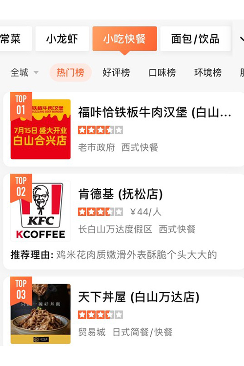 2021年7月16日-白山市小吃快餐熱門...
